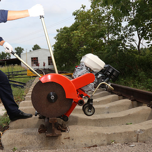 La taglierina per binari abrasivi è adatta per il taglio fino a 60 kg. Rotaie da 110 pezzi. la macchina ha caratteristiche di alta velocità di taglio, alto tasso di utilizzo dei dischi da taglio, alta qualità del profilo di taglio, funzionamento conveniente, movimento facile e uso sicuro. la macchina è composta da motore a scoppio, integrato con un gruppo di taglio dotato di disco abrasivo.