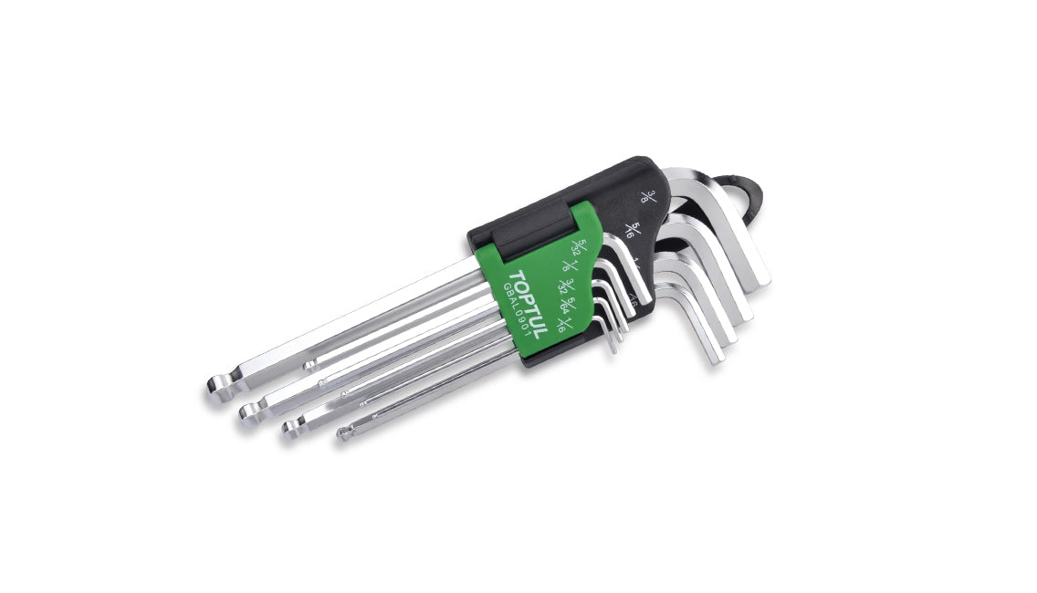 Serie chiavi esagonali testa sferica lunghe in pollici 9Pz